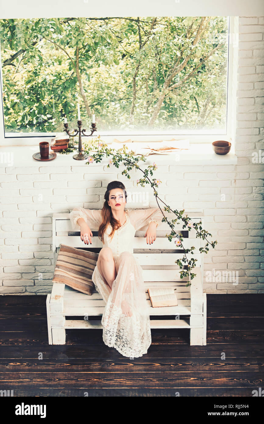 Cahier De Poesie A L Ecrivain Romantique Regardez Dans La Beaute Et De La Mode Vintage Style Jolie Fille En Robe De Mariee Blanche Et Retro Hairstyle Modele Femme La Mode Photo Stock