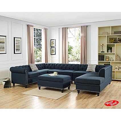 Furniture Street Blue Modern Sectional Sofa Set For Living Room Wooden Sectional Sofa Set For Home L Shape Sofa Set Office Amazon In Home Kitchen