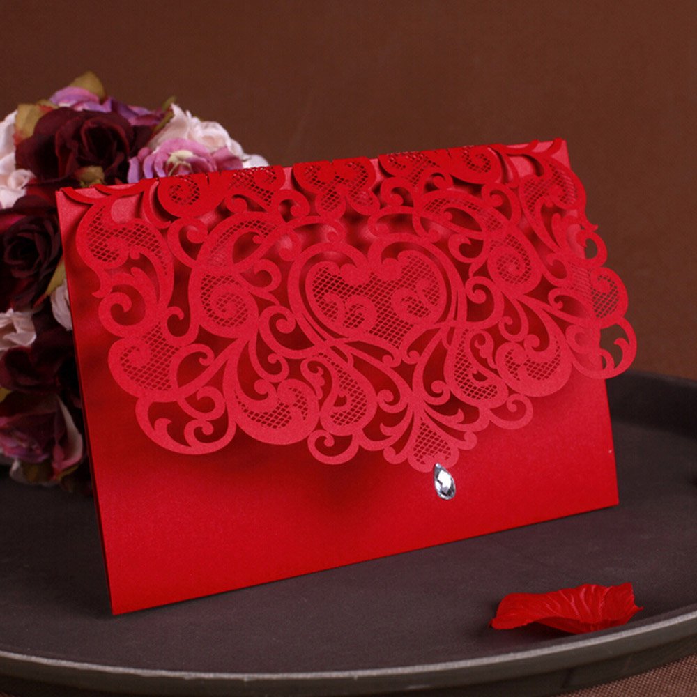 Womhope 50 Pcs Classic Red Color Laser Cut Lace Card Wedding Invitation Party Folding Invitations Cards Birthday Invitations Cards Wedding Favors With Acrylic Rhinestone B Amazon In Health Personal Care