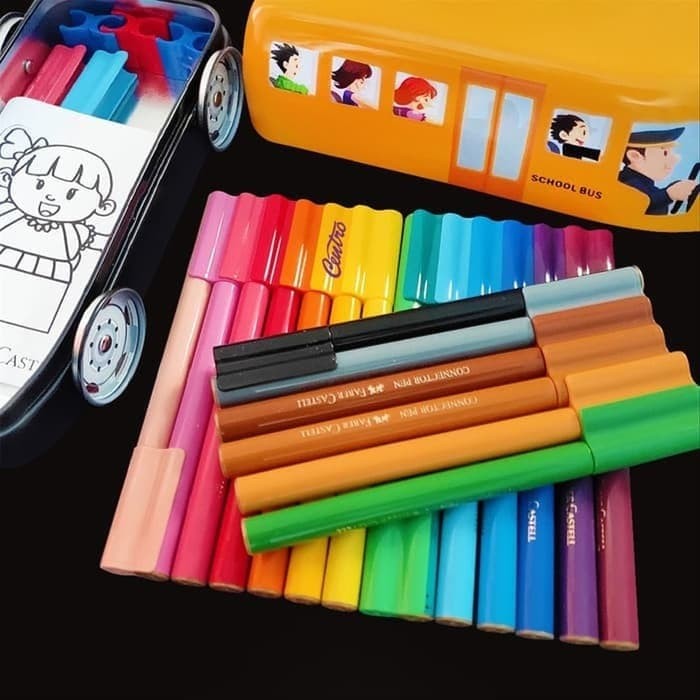 Connector Pen 20 School Bus Tin Faber Castell Malaysia