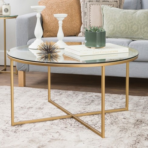 Contemporary Coffee Table With Tempered Safety Glass And X Base Gold Best Buy Canada